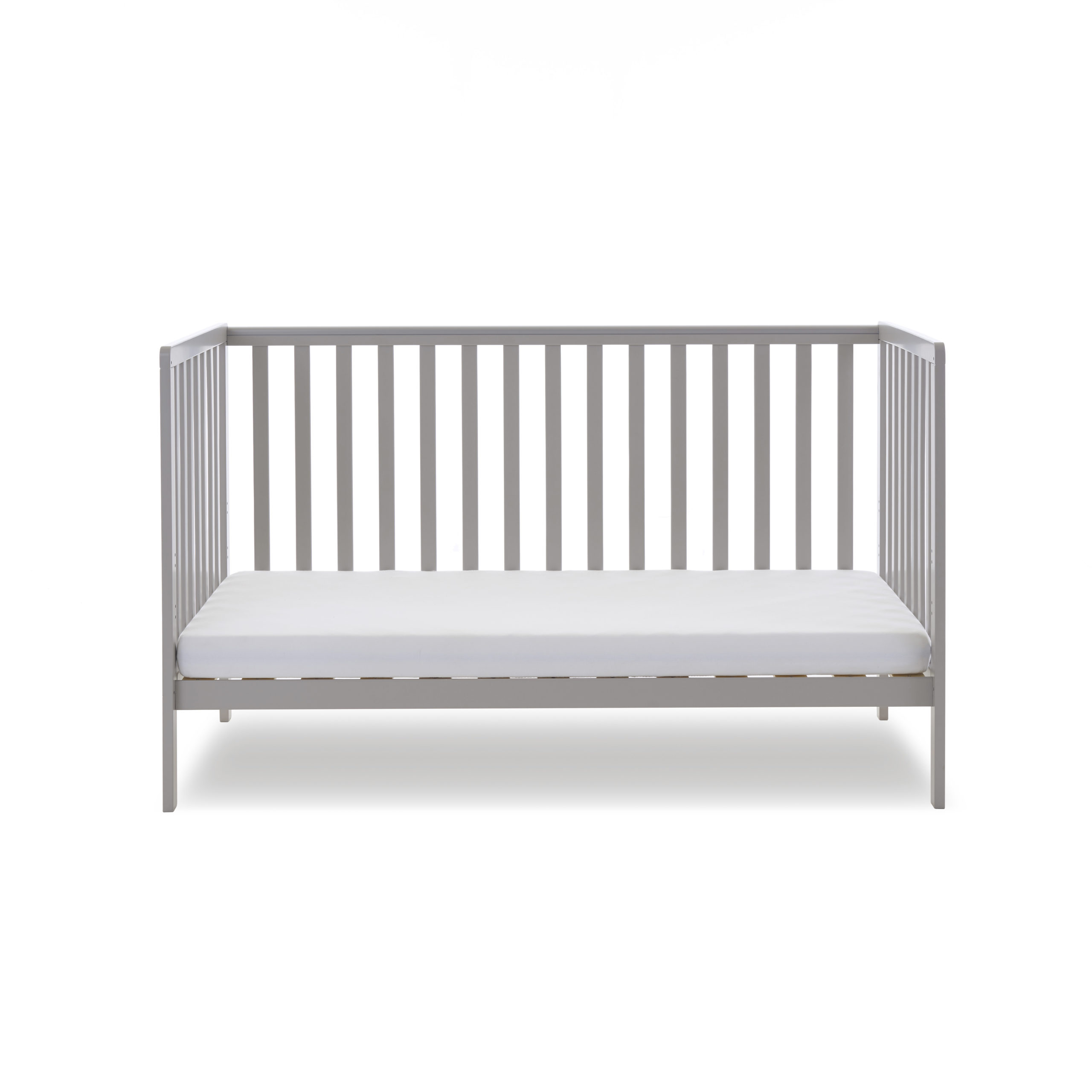 The Obaby Bantam cot bed offers parents fantastic features at a great price. The top position on the adjustable mattress base allows you pick up and put down your newborn without straining and as your child grows, learning to sit and stand, you can lower the base by a further two positions so that your little one is always safe and secure. Protective teething rails ensure their delicate first teeth are protected and the fully open slatted design means you can keep an eye on your little one at all times.