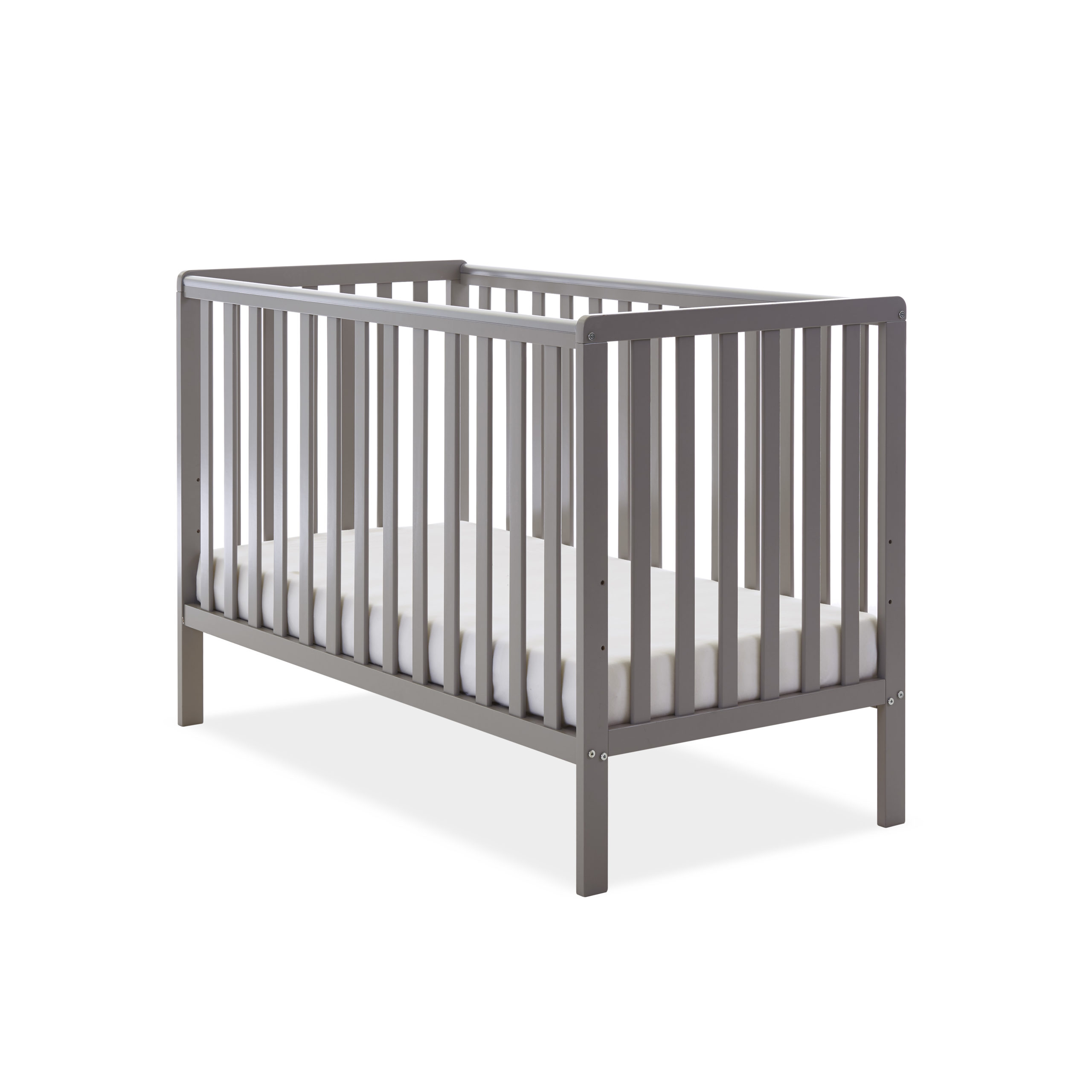 This cot features protective teething rails assuring you that your little one’s first teeth are protected, a fully open slatted design meaning you can keep an eye on your baby at all times and a three-position adjustable mattress base. The highest setting lessens the pressure and strain on your back and the lower settings ensure optimum security from birth to toddler age.