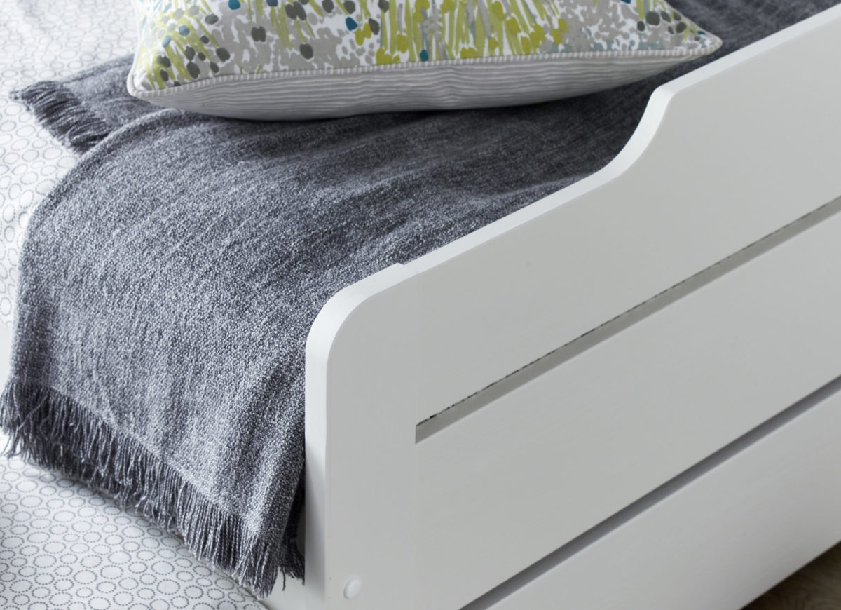 With the Bedmaster Copella Guest Bed the pull out section comes on wheels making it easy to work with. Add your mattresses for a comfortable sleeping surface, make sure to get the correct depth to not cause issues when sliding in and out underneath. Finished with the white clips this shows attention to detail and the design and adds class and charm to the buy.