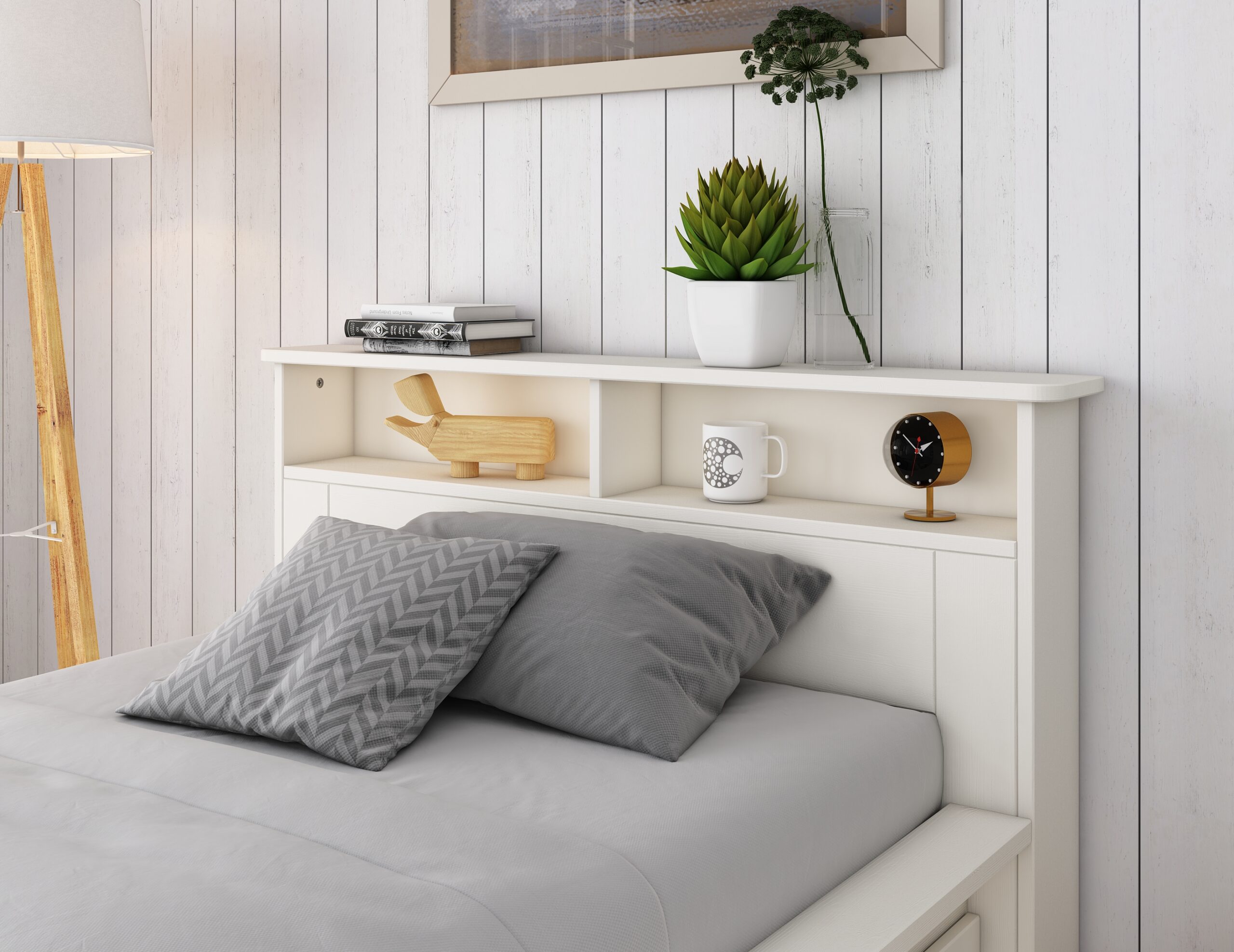 • Bookcase headboard with 2 shelves