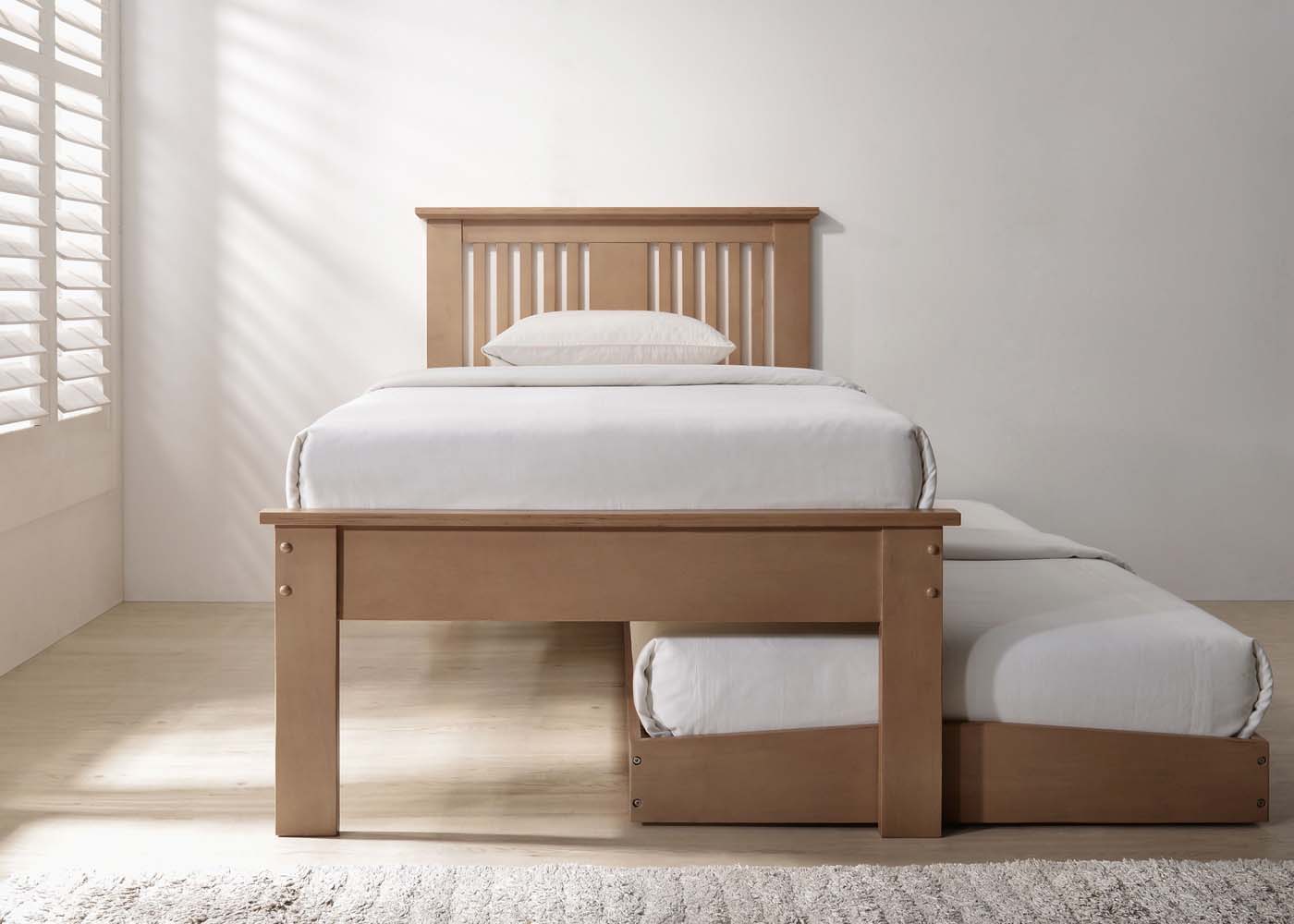 The bed has an oak affect finish but is manufactured from good quality poplar wood.