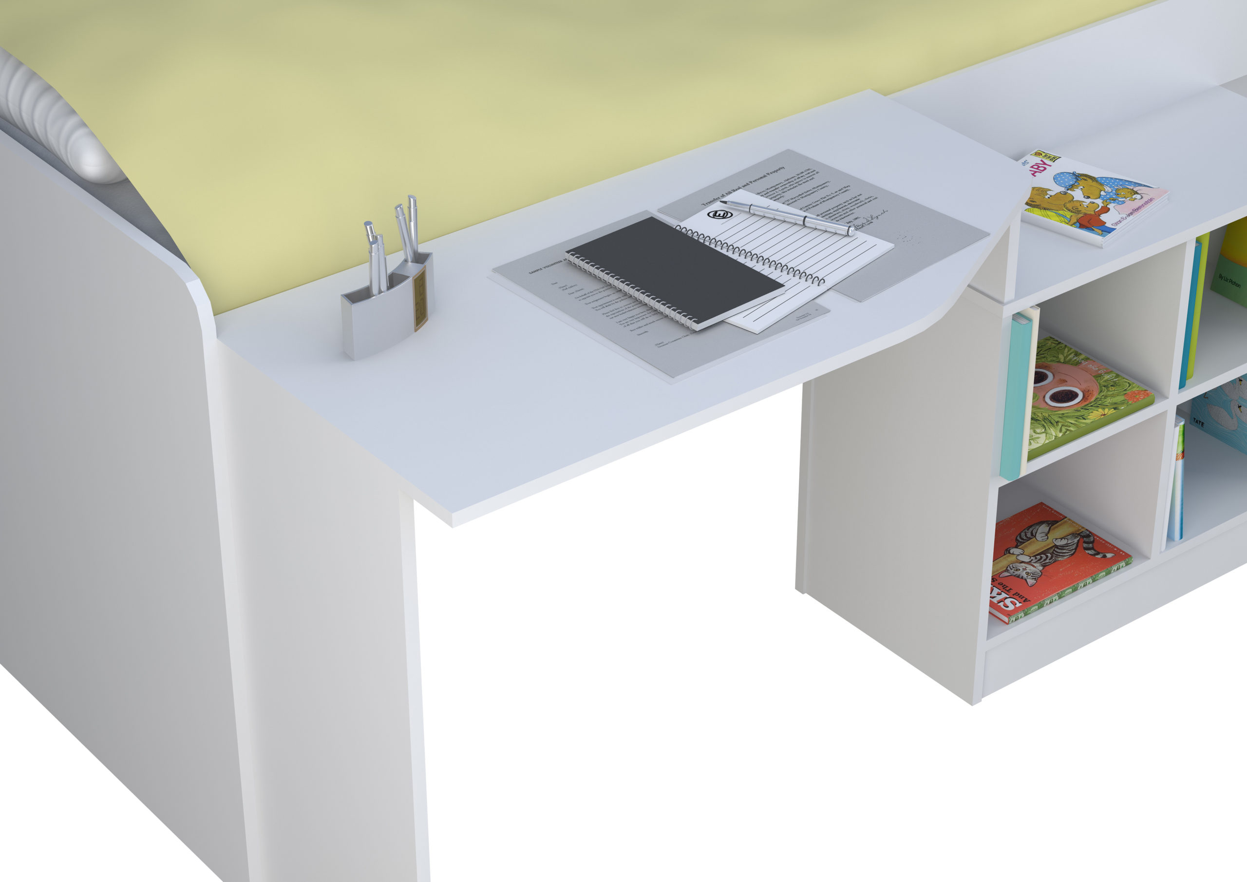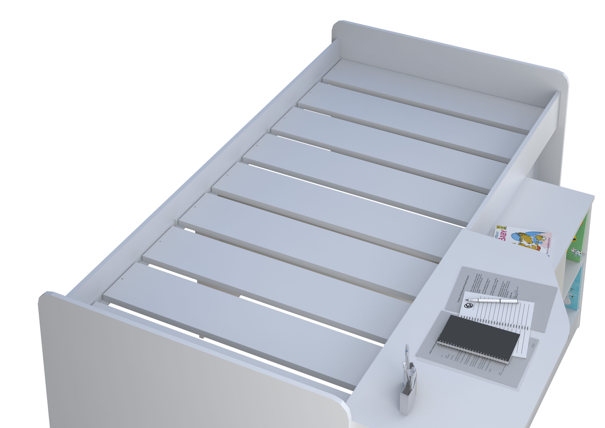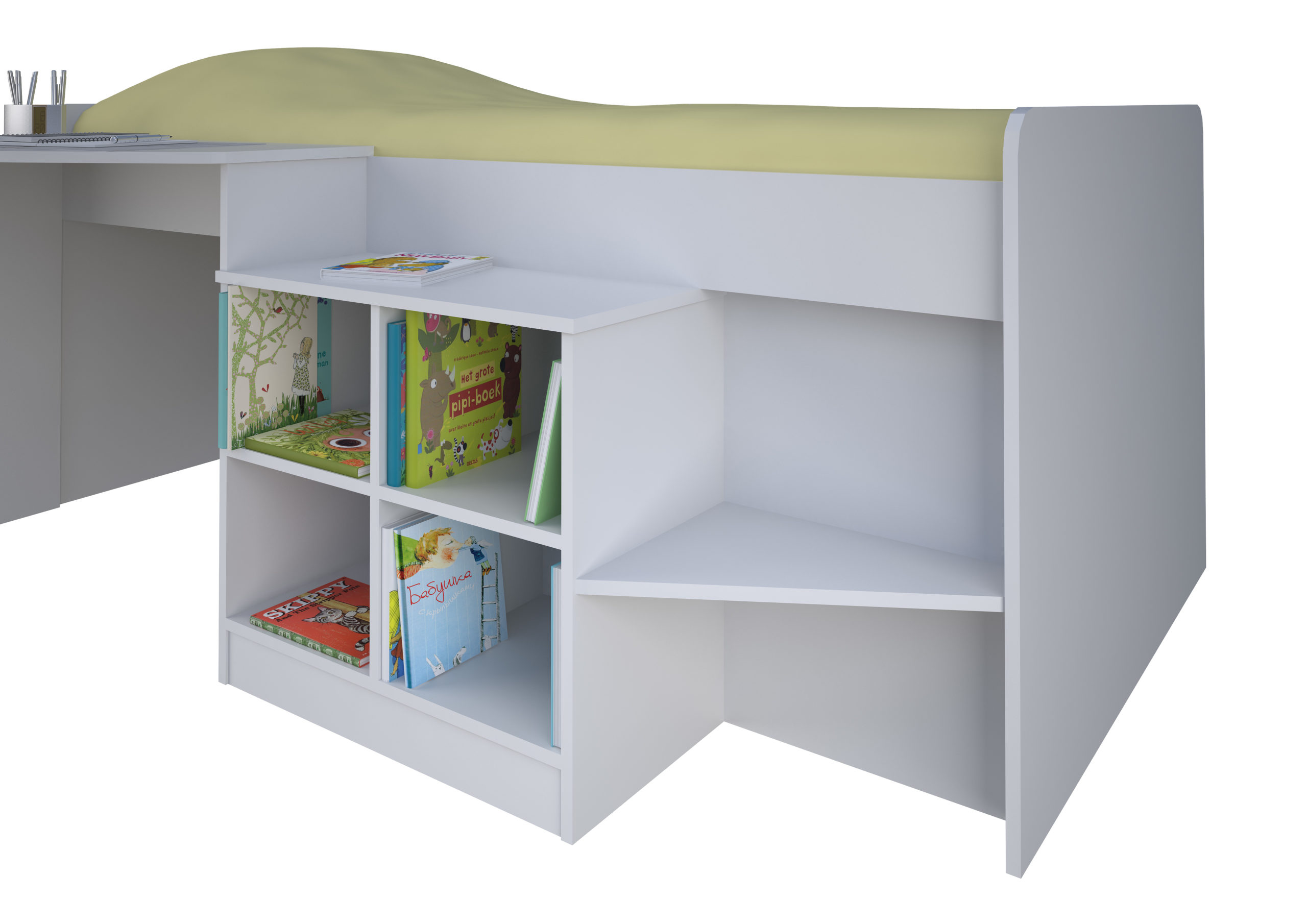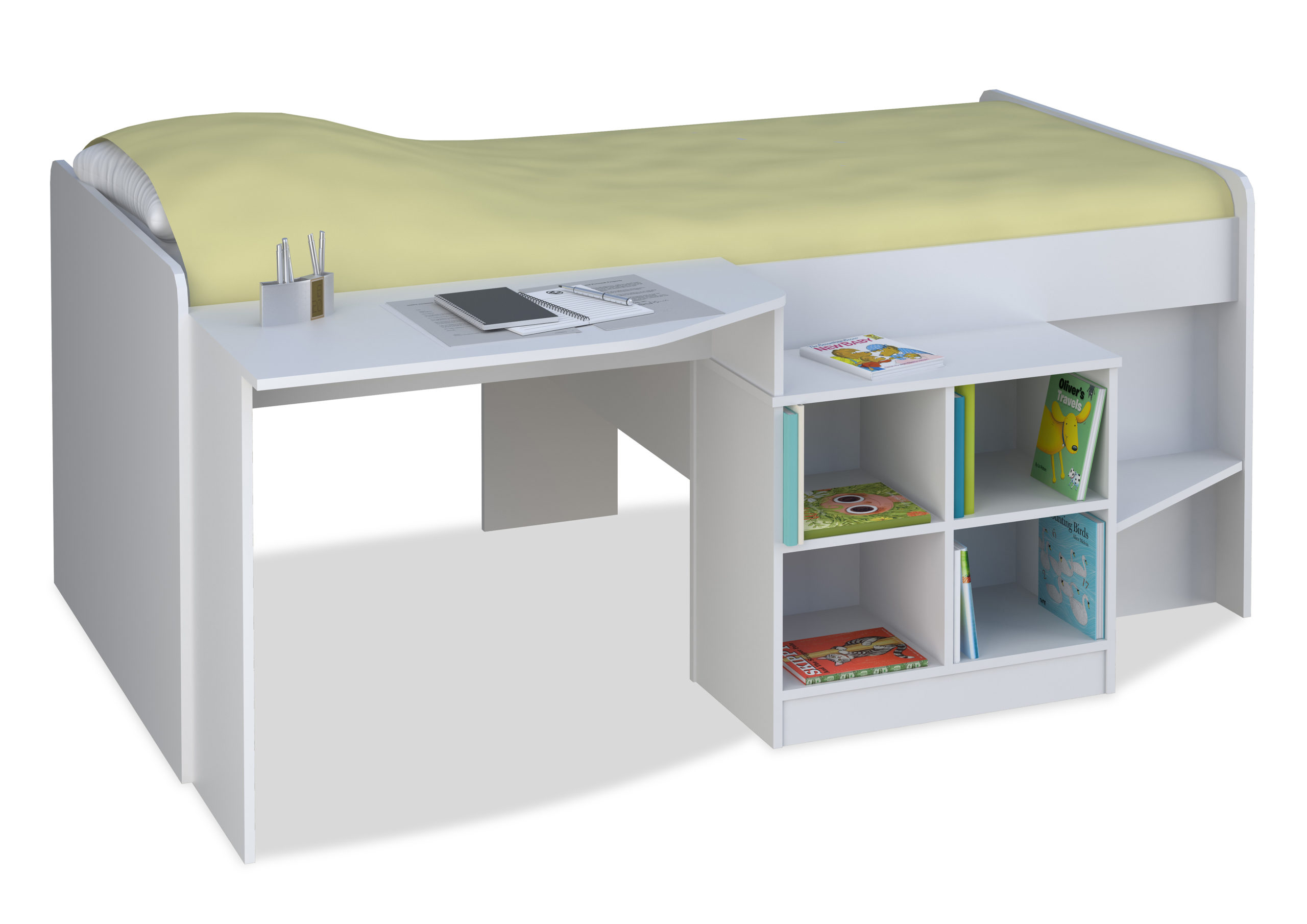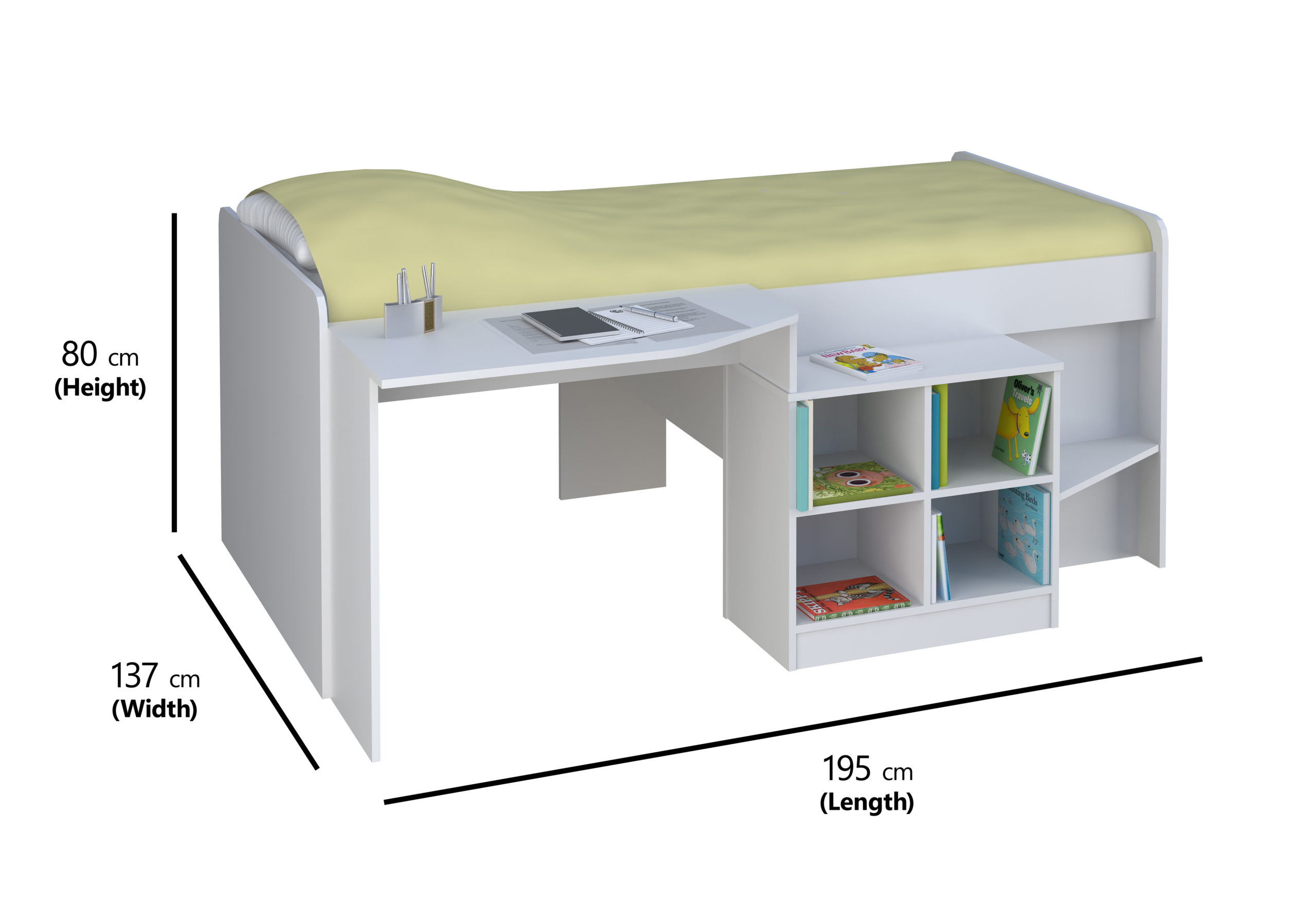 The Pilot cabin bed is like a Batman utility belt, it has everything all in one place. A desk, bookcase and sleeping area all designed into a great space saving idea. It s low to the ground and ideal for any age group. Finished in a durable wipe clean material with thicker edges for sustained durability. Comes flat packed for easy home assembly.