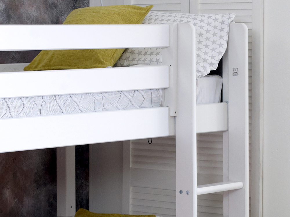 The solid pinewood is finished with a bright white to provide a contemporary looking bunkbed.