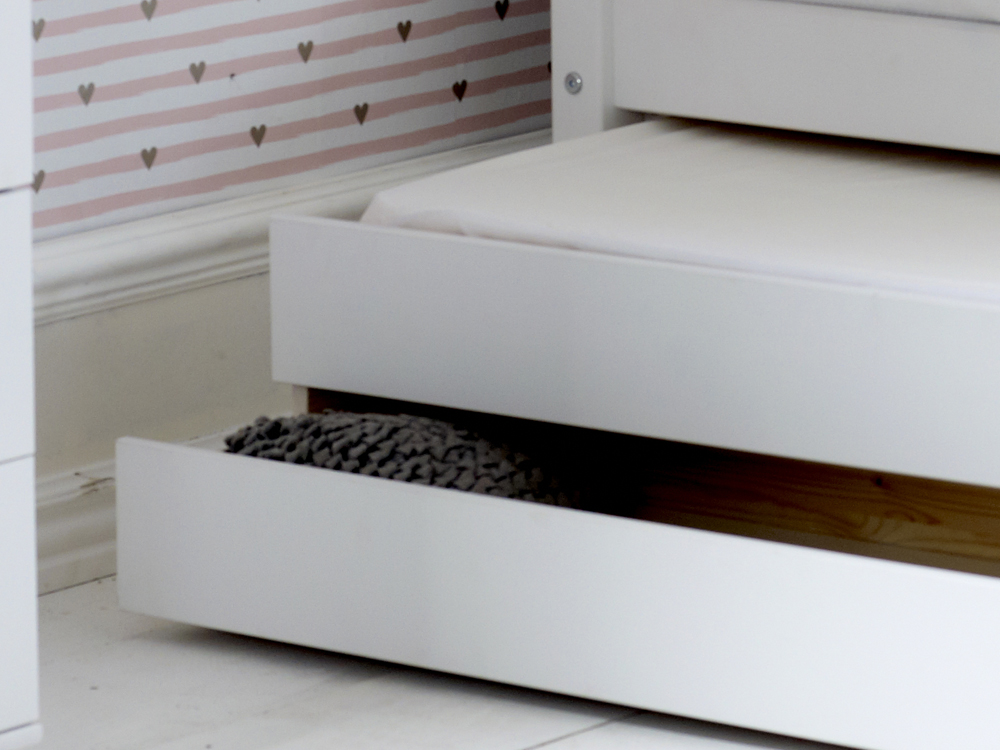 The range is made from great quality Scandinavian pinewood which is then lacquered in a clean white finish.