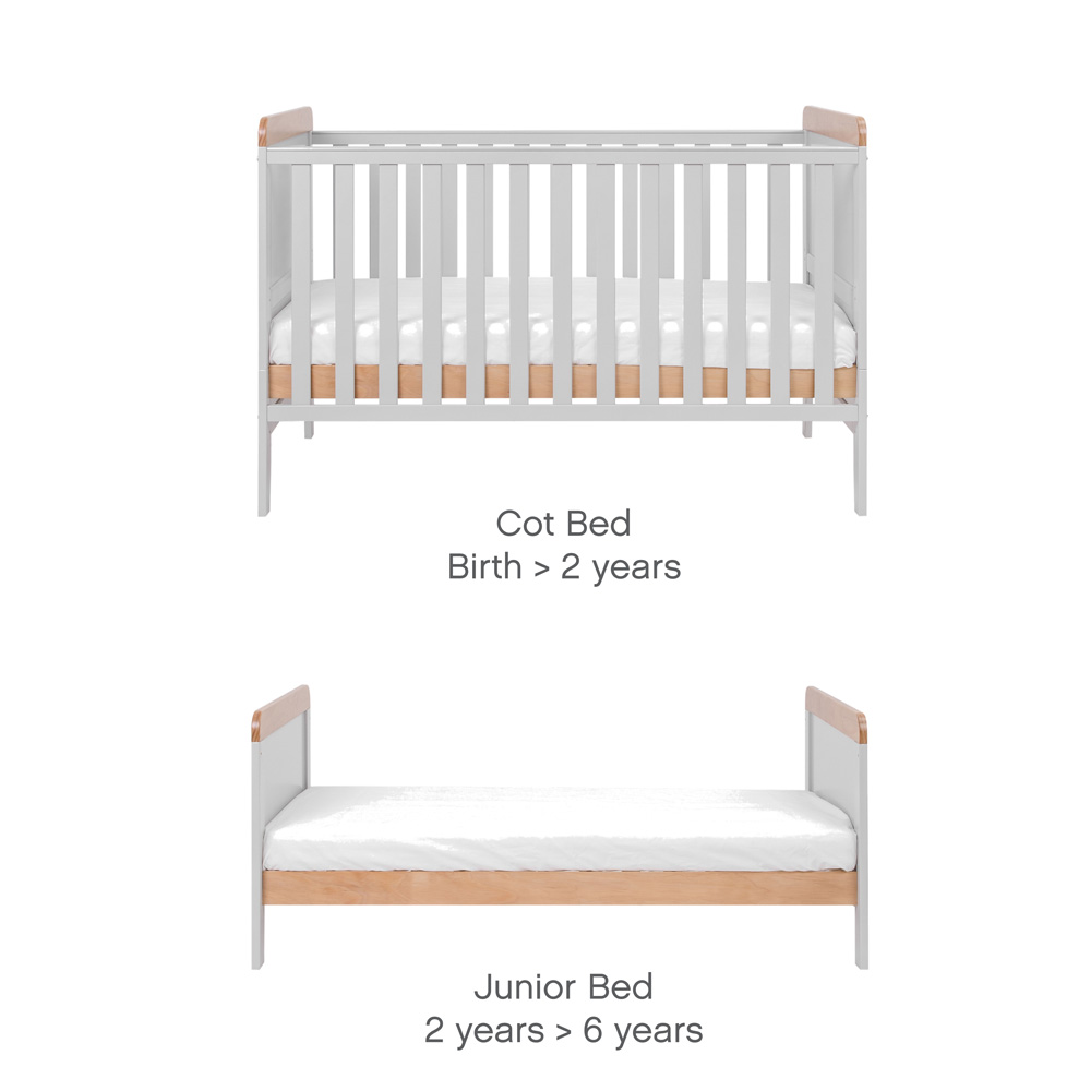 • Cot Bed is suitable from birth up to approximately 6 years converting from a cot into a junior bed