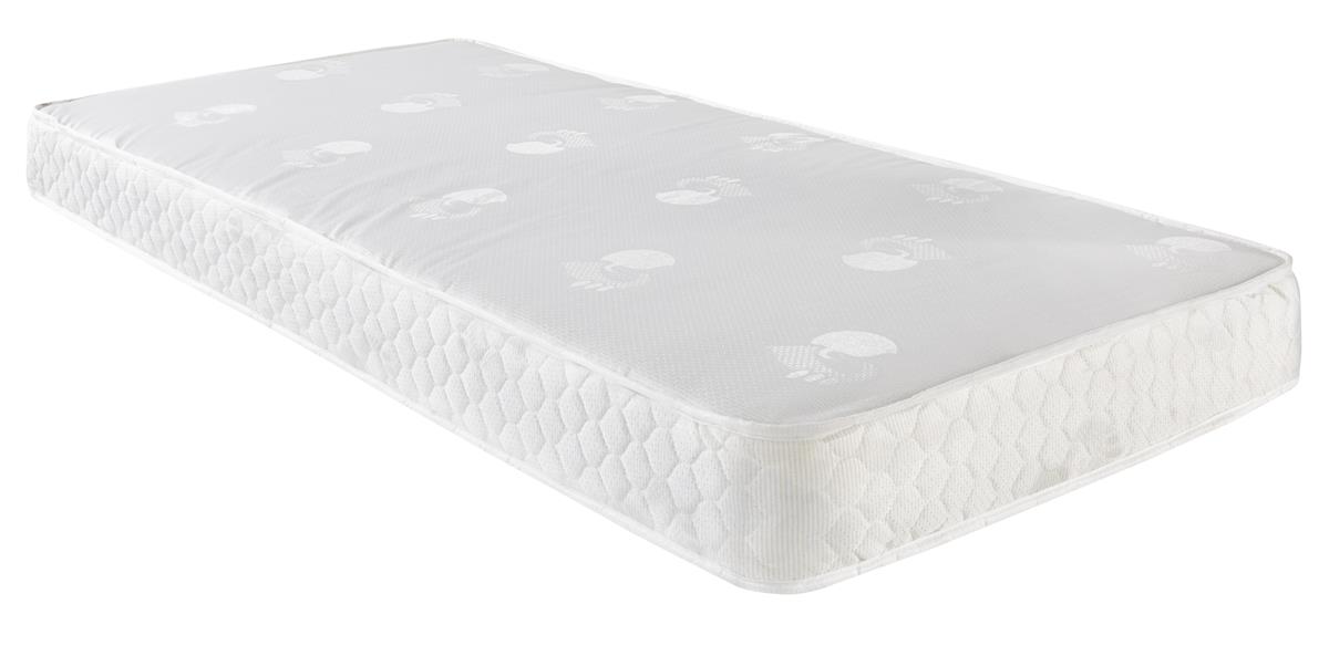 The mattress is an open coil sprung mattress which consists of an interconnected spring system for a comfortable nights sleeps.